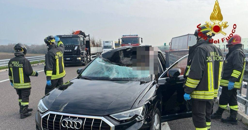 L’animale ha colpito con violenza il parabrezza, sfondandolo ed entrando parzialmente nell’abitacolo, dove ha colpito la donna alla guida, rimasta ferita e incosciente.