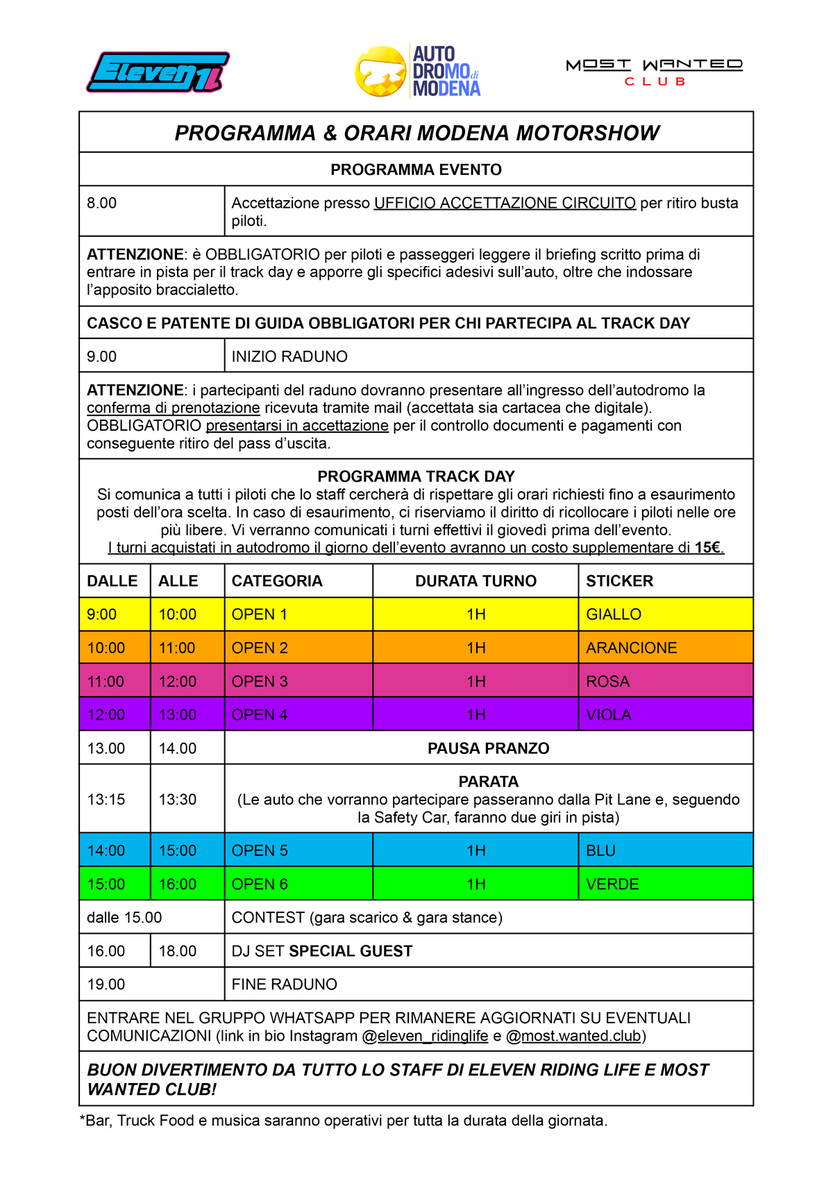 Trackfood, bar, DJ set, esposizioni, gare scarico e stance