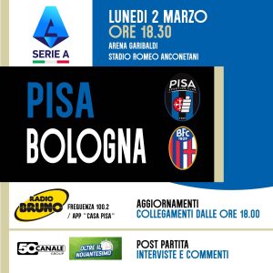 Pisa-Bologna su Radio Bruno dalle 18 di lunedì 2 marzo