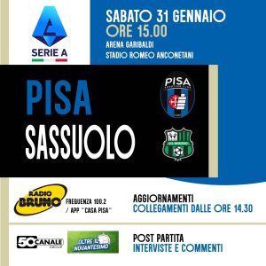 Pisa-Sassuolo su Radio Bruno dalle 14:30 di sabato 31 gennaio