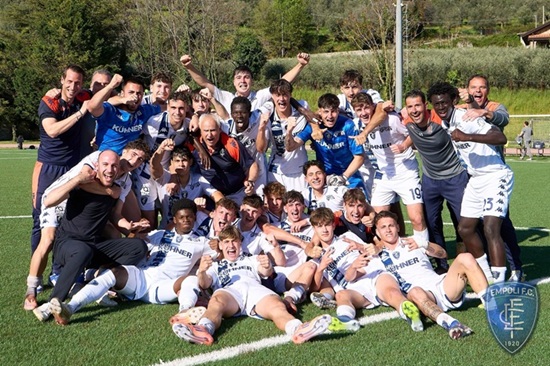 La Primavera dell’Empoli centra la promozione in Primavera 1 con ben quattro giornate d’anticipo: decisivo il 4-0 inflitto alla Salernitana sul loro campo. Dopo un avvio difficile, dove dopo due mesi di campionato gli azzurrini erano quarti in classifica, da novembre la squadra allenata da Filippeschi ha letteralmente innestato la marcia giusta e, dopo aver scalato la classifica, superando le concorrenze di Pisa, Pescara, Perugia, Benevento ed i tentativi di resistenza di Avellino e Spezia, ha poi allungato fino a portare a 16 i punti di vantaggio sulle dirette inseguitrici, che a quattro giornate dalla conclusione del campionato e dodici punti a disposizione hanno certificato l’aritmetica promozione in anticipo. L’Empoli da adesso giocherà per provare ad infilare qualche record per la categoria e poi giocherà la Supercoppa Primavera contro la vincente dell’altro girone: presumibilmente Como o Lecco.