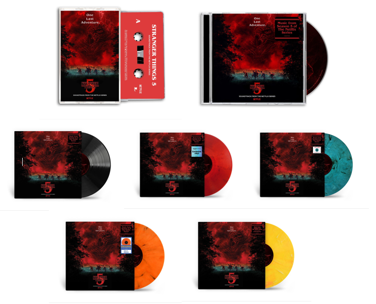Pubblicata da Legacy Recordings, la divisione catalogo di Sony Music Entertainment, “Stranger Things: Soundtrack from the Netflix Series, Season 5” è già disponibile in digitale su Spotify. È stata annunciata la linea di vinili colorati in edizione limitata in collaborazione con Amazon, Target, Walmart e Sony Music Store. Il nero standard, il red smoke esclusivo di Amazon e il blu smoke esclusivo di Target.