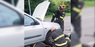 Gatto incastrato nel motore di un’auto: salvato dai Vigili del Fuoco