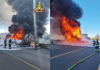 Sasso Marconi: incendio di un autoarticolato in A1, impegnate sette squadre...