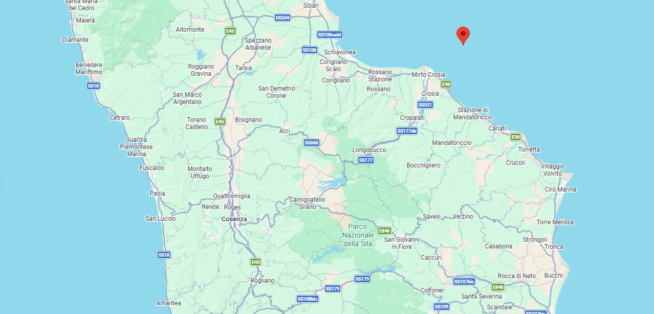 I Comuni più vicini all’epicentro sono Calopezzati, Crosia e Caloveto. La scossa è stata distintamente avvertita dalla popolazione, specie ai piani alti, ma al momento non vengono segnalati danni a cose o persone. Sono comunque in corso verifiche. (fotografia GoogleMap dal sito internet Ingv)